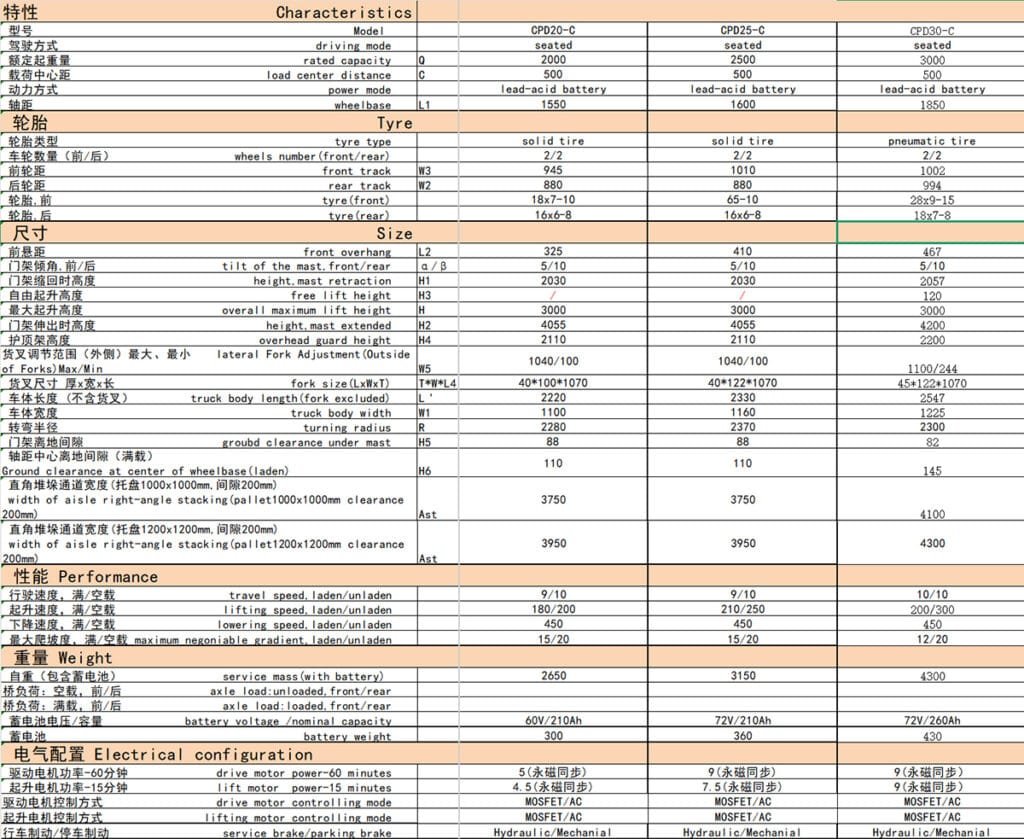 - Rated load: 1000kg – 3000kg