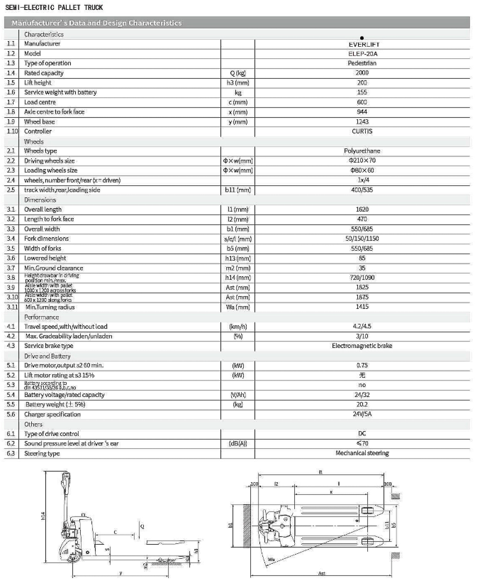 1) Capacity: 2000kg fork size: 550*1150/680*1150mm,