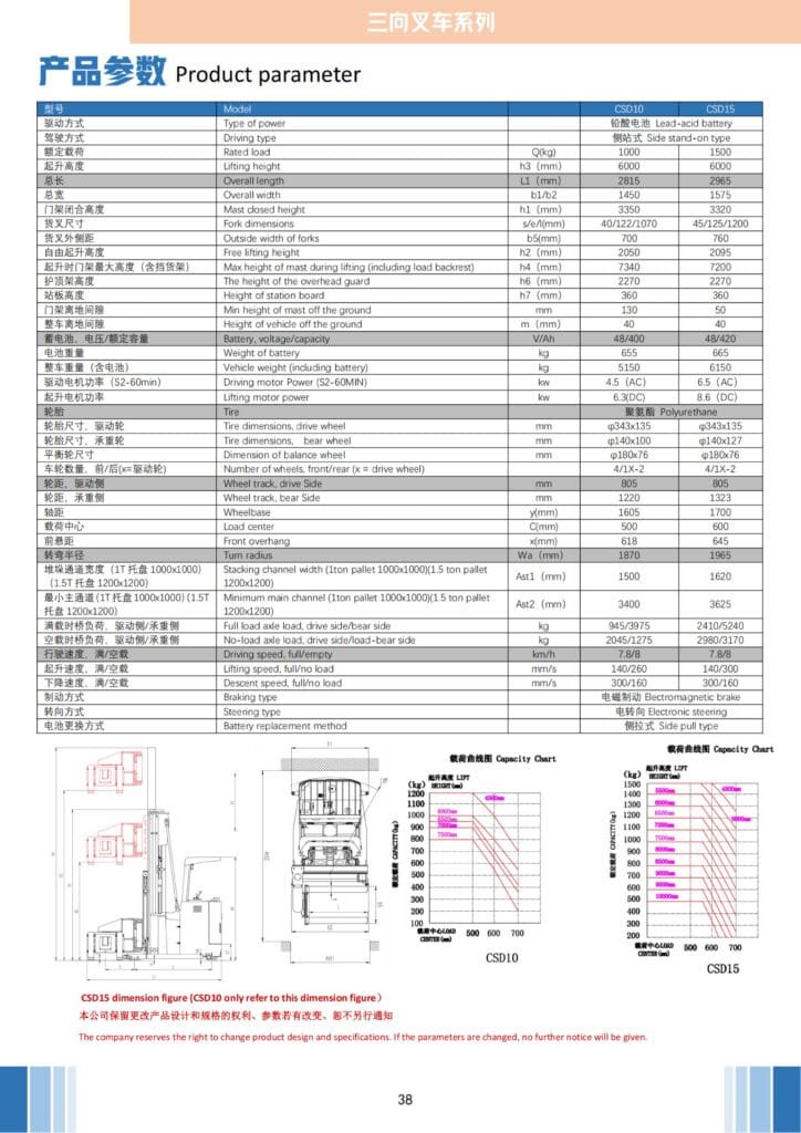 The three-way forklift (VNA forklift) is designed for high-density warehouse storage and narrow aisle operations.
